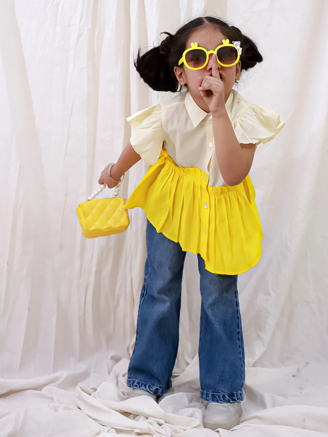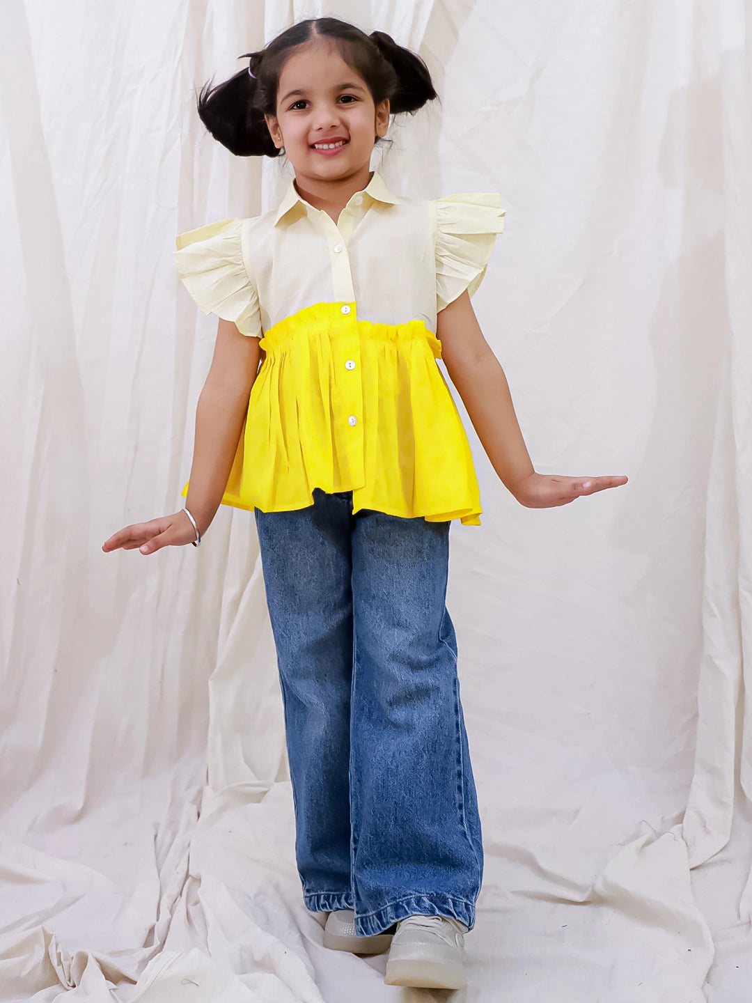 Elevate your daughter's wardrobe with this refined cotton top, thoughtfully designed for the modern Indian child. The delicate ruffle sleeves add an understated elegance, while the pure cotton fabric ensures breathability and comfort throughout the day. Perfect for casual outings or layering, this versatile white piece transitions seamlessly from school to weekend adventures. Gentle on sensitive skin and easy to care for, it's a timeless essential that pairs beautifully with any bottoms in her collection.