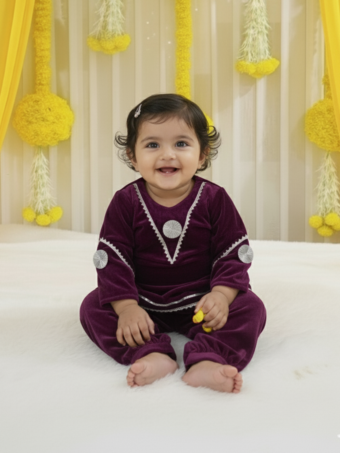 BownBee Winter Velvet Gota Suit Set For Infant Girls - Purple
