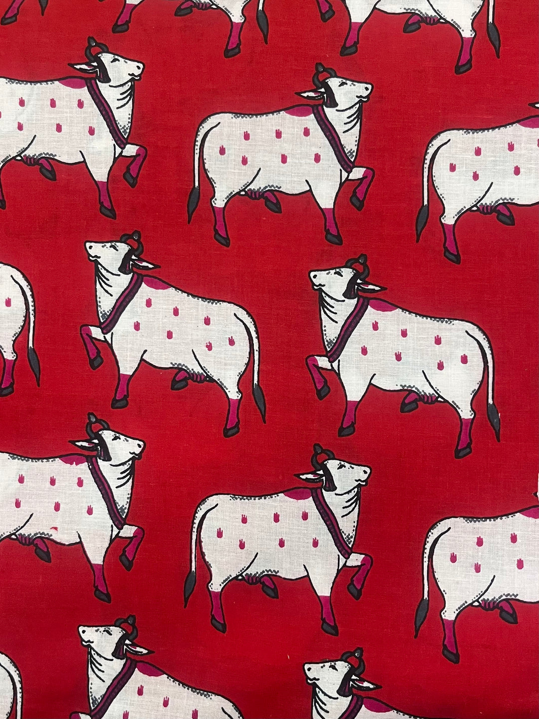 Pure Cambric Cotton Pichwai Cow Print Celebrate timeless Indian artistry with this exquisite cambric cotton piece, featuring the iconic Pichwai cow motif. Crafted from premium pure cotton, this fabric offers exceptional breathability and comfort, making it ideal for traditional wear or contemporary styling. The intricate cow print draws inspiration from classical Rajasthani temple art, bringing cultural elegance to your wardrobe. Soft, durable, and versatile, this piece seamlessly blends heritage craftsmanship with everyday wearability for the discerning parent seeking authentic Indian aesthetics for their child.
